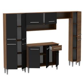 - Puxadores em alumínio, corrediças e dobradiças metálicas e acompanha tampo de madeira para o balcão.