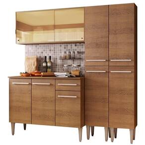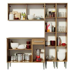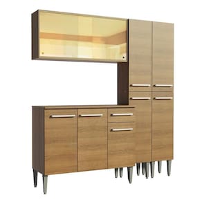 - Itens inclusos: Dois Paneleiros com duas portas cada | Um Armário Aéreo com duas portas em vidro e dois nichos internos | Um Balcão com três portas, uma gaveta e tampo