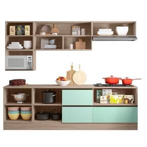 Cozinha Completa Etna 7 Peças Balcão Cooktop Poliman Móveis Carvalho Oak/menta