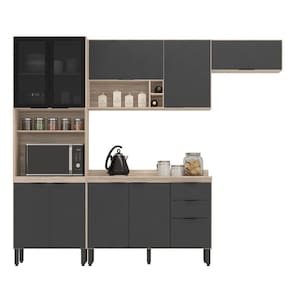 A cozinha modular FIRENZE composição 06 é formada por um paneleiro 4 portas com 2 portas de vidro fume com espaço para forno de até 44L, um aéreo de geladeira 70cm porta basculante com pistão a gás,um aéreo 2 portas 120cm sendo uma com pistão a gás com abertura para cima também com nicho e porta vinhos, um balcão 120cm com 3 portas e 2 gavetas com tampo que pode ser substituído por pia. Seus pés são de polipropileno reguláveis se adequando as condições do chão, puxadores pretos com design moderno, corrediças e dobradiças metálicas. Estruturado em MDP com revestimento ultravioleta e acabamento fosco.Para garantir a qualidade do produto dentro da embalagem, as caixas são revestidas por um plástico termoencolhível e todas as peças são separadas por isomanta.