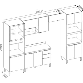 A cozinha modular FIRENZE composição 01 é formada por uma torre quente com espaço para dois fornos de até 44L, um aéreo de geladeira 70cm porta basculante com pistão a gás, um aéreo 2 portas 120cm sendo uma com pistão a gás com abertura para cima também com nicho e porta vinhos, um paneleiro 4 portas com 2 portas de vidro fume, um balcão 120cm com 3 portas e 2 gavetas com tampo que pode ser substituído por pia. Seus pés são de polipropileno reguláveis se adequando as condições do chão, puxadores pretos com design moderno, corrediças e dobradiças metálicas. Estruturado em MDP com revestimento ultravioleta e acabamento fosco. Para garantir a qualidade do produto dentro da embalagem, as caixas são revestidas por um plástico termoencolhível e todas as peças são separadas por isomanta. Acabamento da Prateleira: Pintura Escala de Brilho da Prateleira: Fosco Acabamento da Gaveta: Pintura Escala de Brilho da Gaveta: Material do Puxador da Gaveta: Acabamento da Porta: Pintura Escala de Brilho da Porta: Fosco Material do Puxador da Porta: Acabamento: Pintura Acabamento dos Pés: Acompanha Tampo: Sim Altura dos Pés: Ambiente Principal: Cozinha Complexidade da Montagem: Alta: deve ser montado por um montador especializado Cor: Avena/Grafito Cor do Produto: Avena/Grafito Cor Flex: Cor Interna: Avena Escala de Brilho: Fosco Gaveta com Chave: Não Informações Complementares: Itens Inclusos: 1 Cozinha, kit de ferragens e manual de montagem Linha ou Coleção: Firenze Manual de Especificação Técnica: https://cdn2.madeiramadeira.com.br/atributo/demobile-novo/959628-ficha-tecnica-fi0001.pdf Manual de Montagem e Instalação: https://cdn2.madeiramadeira.com.br/atributo/demobile-novo/959626-manual-de-montagem-93221-balcao-02-portas-80cm-firenze.pdf Material da Gaveta: MDP Material da Pia: Material da Porta: MDP/Vidro Material da Prateleira: MDP Material do Fundo: Material do Tampo: MDP Material dos Pés: PVC Medida de cada item (A x L x P): Paneleiro 2 Portas Vidro 219 x 70 x 52 / Balcão 84 x 120 x 52 / Tampo 8 x 120 x 52 / Armário Aéreo Nicho 67 x 120 x 29 / Aéreo 1 Porta 70 cm29 x 70 x 29 / Paneleiro Duplo 219 x 70 x 52 Medida do Recorte para Cooktop: Montagem Flex: Necessita Montagem: Sim O Balcão Acompanha Pia: Não Origem do Produto: Nacional Pés Reguláveis: Sim Peso: 173.36 Peso Máximo por Gaveta: 3 Peso Máximo por Prateleira: 3 Possui Pés: 13 Possui Portas: 14 Possui Prateleiras: 05 Possui recorte para Cooktop: Não Possui Rodízio: Não Recomendações de Uso, Manutenção e Limpeza: Flanela Seca Rodízio com Trava: Sapatas Niveladoras: Não Sistema de Montagem: Parafusos e cavilhas Suporta Até (kg): Tamanho Indicado da Pia: Tamanho Indicado do Tampo: Tipo de Corrediça da Gaveta: Metálica Simples Tipo de Dobradiça da Porta: Metálica Tipo de Madeira Maciça: Tipo de Madeira Maciça da Gaveta: Tipo de Madeira Maciça da Porta: Tipo de Madeira Maciça da Prateleira: Tipo de Madeira Maciça do Puxador da Gaveta: Tipo de Madeira Maciça do Puxador da Porta: Tipo de Madeira Maciça dos Pés: Tipo de Porta: Misto (Bater e Basculante) Tipo de Puxador da Gaveta: Externo Tipo de Puxador da Porta: Externo