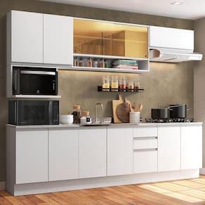 Esta cozinha pode ser complementada pelos módulos avulsos da linha Glamy da Madesa.