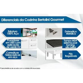 Abaixo segue os produtos do KIT: Cozinha Completa Gourmet 4 Peças (2 Armários + 2 Balcões) C4P69 Branco - Bertolini