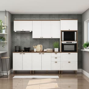 Itens Inclusos: 1 Torre Forno e Micro, 1 Armário Aéreo, 2 Balcão , 1 Aéreo Basculante, Kit Ferragens, Manual de Montagem