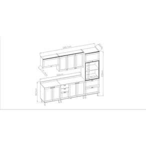 Medida de cada item (A x L x P): Torre Forno e Micro (2,30 x 6,97x52) Aéreo de 1,20 (78 x1,20x31,5) Balcão de 1,20 (91 x1,20x52) Aéreo basculante ( 46,5x80x31,5) Balcão de 80 cm 2 Portas (91 x80x52)