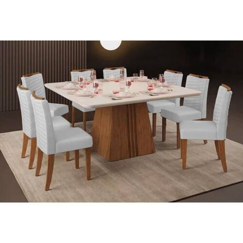 Sala de Jantar Completa Itália Tampo Madeirado c/ Vidro Curvo 136x136cm e 8 Cadeiras Julia Freijo/Off White - Linho Neve - DJ Móveis Abaixo segue os produtos do KIT: Sala de Jantar Completa Itália Tampo Madeirado c/ Vidro Curvo 136x136cm e 8 Cadeiras Julia Freijo/Off White - Linho Neve - DJ Móveis
