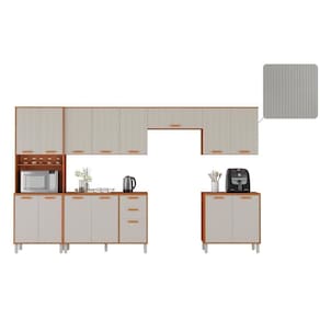 O corpo amadeirado Cinamomo traz aconchego ao ambiente, enquanto as portas e frentes de gaveta na cor Fendi oferecem sofisticação na medida certa. Os puxadores em plástico ABS são discretos e funcionais, e os pés em plástico PP são reguláveis para melhor adaptação ao seu espaço.