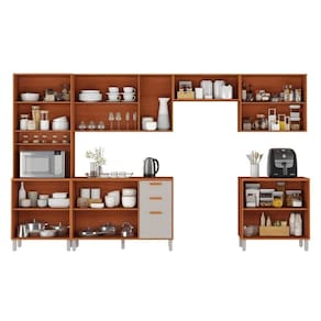 Paneleiro: 210 x 70 x 45Aéreo 3 portas: 69 x 120 x 31Aéreo 2 portas: 69 x 80 x 31Aéreo 1 porta horizontal: 31,5 x 80 x 31Balcão 3 portas e 2 gavetas: 86 x 120 x 45Balcão 2 portas: 86 x 80 x 45