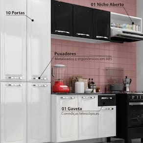 A cozinha é o coração da casa e, quando bem equipada, pode tornar a vida mais fácil e prática. Com a Cozinha Compacta da linha Amanda sua casa nunca será a mesma. Ela conta com: