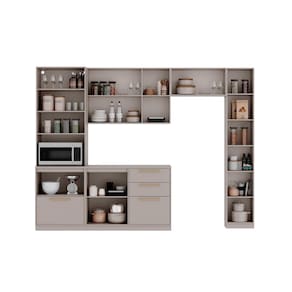 Com pés fixos que oferecem estabilidade, portas de bater, prateleiras internas e capacidade de carga elevada. A Cozinha Completa Itatiaia Essence 5 peças Fendi Gris entrega
