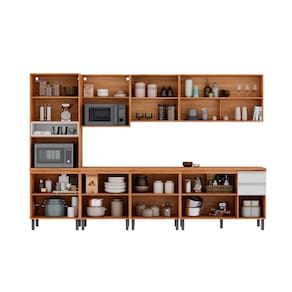 Madeira MDP 15mmA Cozinha Completa Itatiaia Ideale 7 Peças é moderna, funcional e muito resistente. Com acabamento sofisticado em Cinamomo/Off White, os módulos se adaptam a diferentes estilos de decoração, tornando o ambiente mais elegante e organizado.