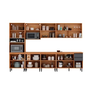 Madeira MDP 15mmA Cozinha Completa Itatiaia Ideale 7 Peças traz modernidade, funcionalidade e durabilidade em um só conjunto. Com acabamento nas cores Cinamomo e Grafite Intenso, a linha combina design sofisticado, praticidade e organização.