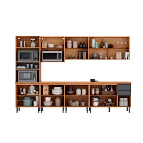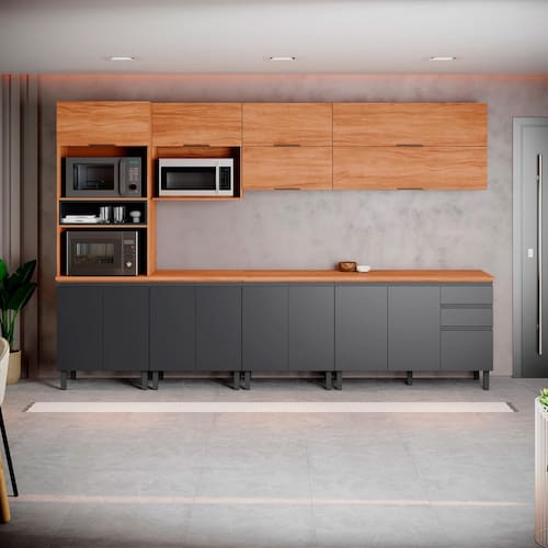 Madeira MDP 15mmA Cozinha Completa Itatiaia Ideale 7 Peças é a escolha perfeita para quem busca modernidade, funcionalidade e durabilidade em um só conjunto. Com acabamento nas cores Cinamomo e Grafite Intenso, a linha combina sofisticação e praticidade para transformar sua cozinha em um ambiente elegante e organizado.