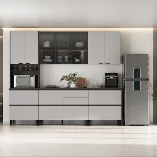 A Cozinha Completa Itatiaia Lumina 270cm é a escolha ideal para quem busca aliar funcionalidade, durabilidade e um visual sofisticado. Com acabamento nas cores Grafite e Fendi, essa cozinha planejada traz um toque moderno e elegante para qualquer ambiente.