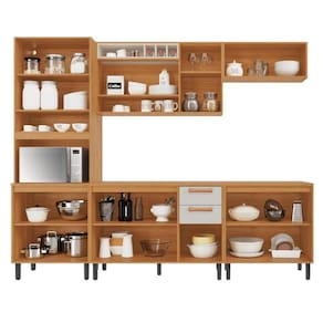 Destaques do produto: 5 peças bem distribuídas, garantindo amplo espaço para armazenar utensílios, alimentos e eletrodomésticos. Inclusão de forno, tornando a cozinha ainda mais prática e versátil. Medidas: Perfeita para diversos tamanhos de ambientes, com design inteligente que aproveita o espaço. Acabamento de alta qualidade, com detalhes resistentes que proporcionam durabilidade e estilo.