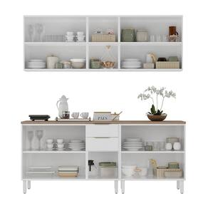 Composta por 4 peças, essa cozinha oferece uma excelente organização para os utensílios do dia a dia, além de um acabamento de alta qualidade que garante durabilidade e resistência. O seu design clean na cor branca proporciona um toque de sofisticação, adaptando-se facilmente a diferentes estilos de decoração.