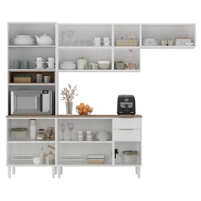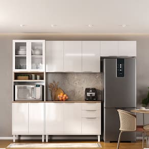 Design moderno e funcionalidade inteligente A Cozinha Completa Itatiaia Renova, com 270cm de largura, é a escolha perfeita para quem busca elegância e praticidade em um só produto. Com um design moderno na cor Branco Neve, ela se adapta facilmente a diversos estilos de decoração, trazendo sofisticação e versatilidade para sua cozinha. Composta por 12 portas, 2 gavetas, 5 prateleiras e um nicho exclusivo para micro-ondas, oferece amplo espaço para organizar utensílios, mantimentos e eletrodomésticos de forma prática e funcional.