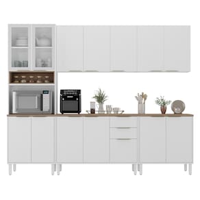 Design moderno com acabamento de alta qualidade A Cozinha Completa Itatiaia Renova, com 270 cm de largura, é a escolha ideal para quem busca elegância e funcionalidade em um só ambiente. Seu design moderno na sofisticada cor Branco Neve combina com diversos estilos de decoração, tornando o espaço mais aconchegante e prático. Composta por 14 portas de bater, 2 gavetas e 7 prateleiras internas, oferece organização inteligente para utensílios, mantimentos e eletrodomésticos. O nicho para micro-ondas integrado também contribui para otimizar o espaço da cozinha, tornando o ambiente mais funcional.