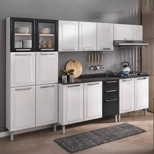 Cozinha Completa Itatiaia Tarsila 280cm Em Aço Branco/preto A Cozinha Completa Itatiaia Tarsila 280cm em Aço Branco/Preto combina sofisticação e praticidade com um visual moderno e impactante. Produzida em aço com pintura eletrostática a pó, ela oferece alta durabilidade e um acabamento impecável. Os puxadores em alumínio com ponteiras em ABS cromado elevam o visual, trazendo um toque refinado e atual. Características principais: Estrutura em Aço com Pintura Eletrostática: Alta durabilidade, resistência e fácil limpeza. Puxadores em Alumínio com Ponteiras Cromadas: Design elegante e robusto. Dobradiças 35mm Slow Motion: Fechamento suave e silencioso, com aquele toque de conforto. Tampo Reto de 25mm com Revestimento em Fórmica: Ideal para quem busca durabilidade e beleza. Balcão de 80cm para Cooktop: Recorte padronizado, com os cooktops de 5 bocas Itatiaia. Combinação de Cores Branco/Preto: Estilo versátil que se adapta a diferentes decorações. É mais que uma cozinha é um espaço inteligente, bonito e pronto pra acompanhar sua rotina com estilo. Acompanha Manual de Instalação: Sim | Material predominante: Aço | Necessita Montagem: Sim | Tipo de móvel: Cozinha completa Ean: 7892946439616
