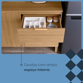 3 gavetas com corrediças telescópicas que deslizam com suavidade e abrem por completo, otimizando o espaço interno.