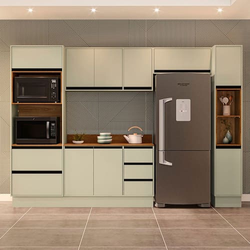 O(a) Cozinha Completa Koya 10 Portas 4 Gavetas Verde Oliva - Politorno é produzido em MDP na escala de brilho Semi-Fosco, e possui um grau de dificuldade de montagem: Médio.