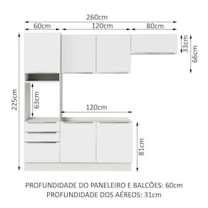 - 60 cm de profundidade nos módulos inferiores e 31 cm nos aéreos