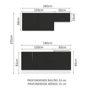 - 52 cm de profundidade nos módulos inferiores e 31 cm nos aéreos