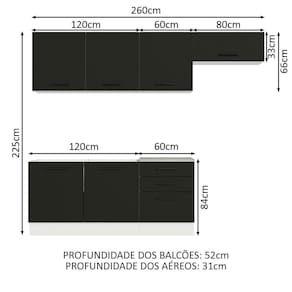 - 52 cm de profundidade nos balcões e 31 cm nos aéreos
