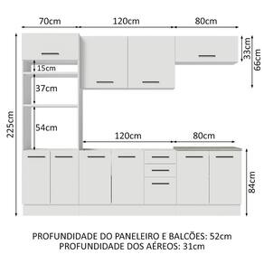 - 52 cm de profundidade nos módulos inferiores e 31 cm nos aéreos