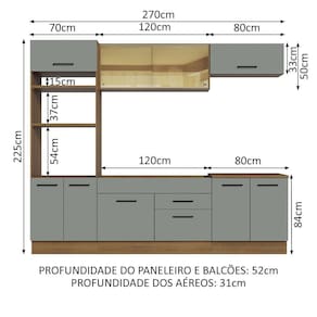 - 52 cm de profundidade nos módulos inferiores e 31 cm nos aéreos