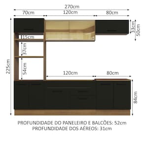 - 52 cm de profundidade nos módulos inferiores e 31 cm nos aéreos