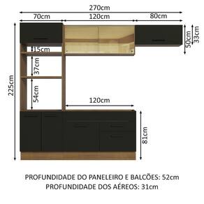 - 52 cm de profundidade nos módulos inferiores e 31 cm nos aéreos