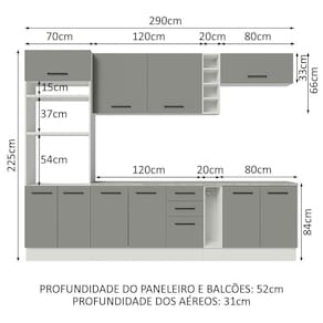 - 52 cm de profundidade nos módulos inferiores e 31 cm nos aéreos