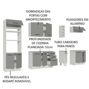 O acabamento da estrutura é branco e o das portas e frentes é cinza. É feito em Pintura Poliéster ecológica, com 7 camadas de proteção resistentes a álcool, água e calor.