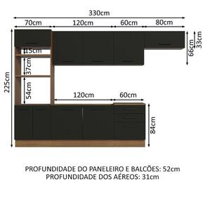 O balcão maior tem espaço para pia de inox ou pedra nas medidas de 120 x 52 cm e não acompanha tampo. O balcão de 60 cm possui tampo que pode ser recortado para instalação de cooktop.