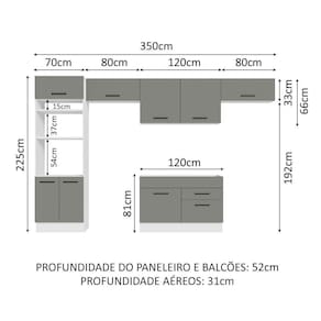 - 52 cm de profundidade no balcão e na torre e 31 cm nos aéreos
