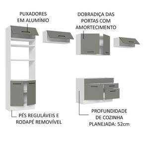 O acabamento da estrutura é branco e o das portas e frentes é cinza. É feito em Pintura Poliéster ecológica com sete camadas, que destaca a tonalidade e protege o móvel.