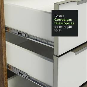 Fabricada com itens de qualidade superior, possui corrediças telescópicas, dobradiças com amortecedores para o fechamento suave das portas e puxadores em alumínio, mais resistentes ao uso diário.