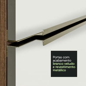 Um dos principais diferenciais desta versão são as portas e frentes das gavetas, que possuem revestimento metálico nas bordas e acabamento em Branco Veludo, uma pintura especial e sofisticada, com toque liso e aveludado.