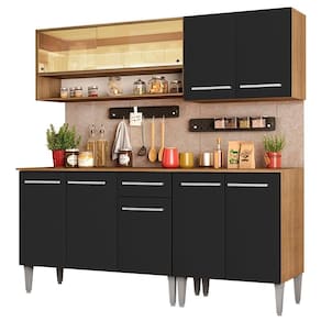 - Itens inclusos: Um (1) Armário aéreo com duas (2) portas de correr de vidro reflex e um (1) nicho | Um (1) Armário aéreo com duas (2) portas | Um (1) Balcão com duas (2) portas e tampo | Um (1) Balcão com três (3) portas, uma (1) gaveta e tampo