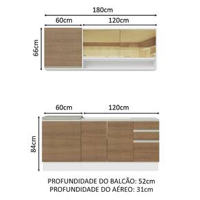 - 52 cm de profundidade nos balcões e 31 cm nos aéreos