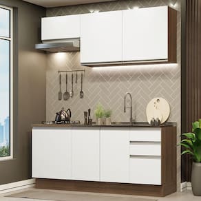 Se destaca pelo bom espaço disponível, pela funcionalidade e é totalmente modulada. É possível organizar os módulos conforme a necessidade do seu ambiente, se tornando praticamente uma cozinha planejada.
