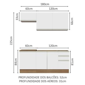- 52 cm de profundidade nos balcões e 31 cm nos aéreos