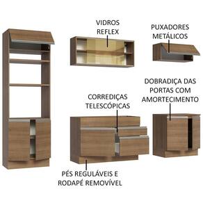 O acabamento da cozinha é em amadeirado Rustic, feito em Pintura Poliéster com 7 camadas que protegem o móvel dos efeitos do álcool da água e do calor.