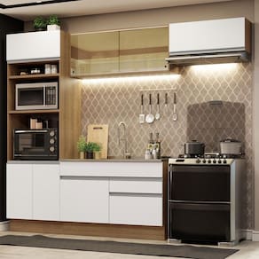 Por ser uma cozinha modulada, você pode fazer a organização de todas as peças conforme a necessidade do seu ambiente. Com isso, se torna praticamente uma cozinha planejada.