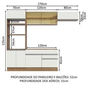 - 52 cm de profundidade nos módulos inferiores e 31 cm nos aéreos