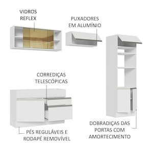 Com design atual, conta com materiais de alto padrão, como vidros reflex, puxadores de perfil total em alumínio, corrediças telescópicas nas gavetas e amortecedores para fechamento suave das portas.