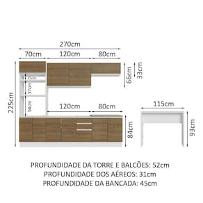 - 52 cm de profundidade nos balcões e na torre, 31 cm nos aéreos e 45 cm na bancada
