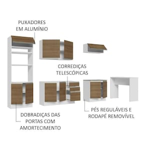 Para completar, a cozinha conta com pés reguláveis em PVC e rodapé removível em MDP de fácil encaixe, para retirar na hora de realizar a limpeza.