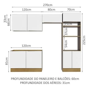 - 60 cm de profundidade na torre e no balcão e 31 cm nos aéreos